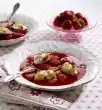 Bring jam to the boil in a pot with 1 tablespoon of water. Brush the particles with it. Put 1 teaspoon of red fruit jelly on each particle and serve
