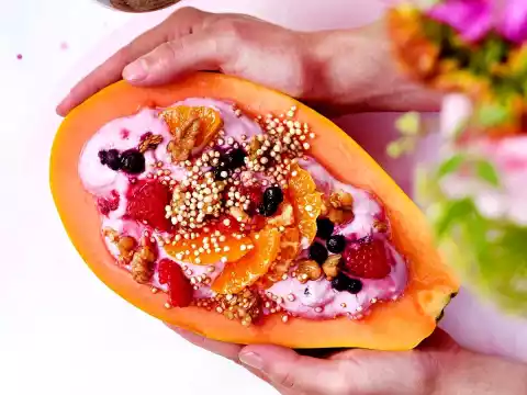 TIP: Haste makes waste - The enzymes of raw papaya make the yoghurt bitter after a short time. Therefore enjoy freshly prepared.