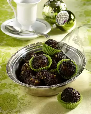 Finely chop dried fruit in the universal chopper with rum and honey. Form approx. 20 balls and turn them into chocolate crumbles. Store in a cool place.