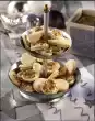 Put 90 g (approx. 45 pieces) walnut halves aside. Grind the remaining walnuts finely. Knead with butter in flakes, sugar, egg, salt, flour and starch to a smooth dough. Wrap in foil and chill for about 30 minutes. Then roll out on a lightly floured work surface and cut out about 90 flowers.
