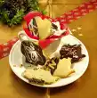 Place on baking trays lined with baking paper. Bake in a preheated oven (electric cooker: 175 °C/ convection oven: 150 °C/ gas: level 2) for approx. 12 minutes. Let them cool down. Warm up the jam. Spread half of the biscuits with the jam. Leave 1 tablespoon. Place a second cookie on each. Decorate with sugar writing in a grid pattern. Spread the rest of the jam on the middle of the cookie blossoms and place 1 walnut half on each.