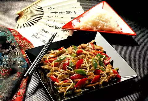 Sauté onion, garlic and paprika in the frying fat. Deglaze with wine, vinegar and stock and steam for about 5 minutes. Stir cornflour in a little water until smooth and thicken the vegetables. Add meat and season to taste with salt, pepper and sugar. Rice tastes good with it