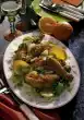 Cut open the wholemeal bar and spread with the salad cream. Wash and clean the lettuce leaves and tomato. Cut the tomato into slices. Fill the wholemeal bar with lettuce, tomato slices, sliced pork and cheese