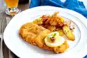 For the goulash, peel and chop the onions. Cut bacon into strips. Wash the meat and dab dry. Heat oil in a roasting pan. Brown the meat in it in portions. Season with salt and pepper and remove. Fry the bacon and onions in the frying fat.