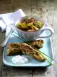 Wash the herbs, dab dry and tie half of them together to form a spice band. Pluck leaves of the remaining herbs from the stems. Wash the chicken thoroughly and sprinkle with salt from the inside. Place the herb bouquet in the abdominal cavity and tie the legs and wings together with kitchen string. Wash the garlic cloves and let them drip off well on a kitchen towel. Clean, wash and finely dice or chop the celery.