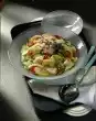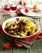Spoon some of the ingredients together and let it simmer for about 5 minutes. Remove with a skimmer, dip briefly in cold water and serve in the stock. Dust with paprika powder. Croutons are delicious with it.