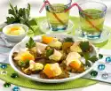 Mix mayonnaise, yoghurt, ketchup and brandy. Peel the garlic and press it into the sauce using a garlic press. Season with salt, pepper and sugar