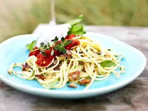 Meanwhile cook the pasta in plenty of boiling salted water (approx. 1 teaspoon salt per litre) according to package instructions.