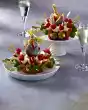 Halve the chilli, clean and scrape out the seeds. Wash the pod and chop very finely. Mix vinegar with chilli, stir in 5 tablespoons of oil in a thin stream. Season with salt and pepper. Mix cucumber and mango with the vinaigrette, season to taste. Lay the salad and prawns in glasses