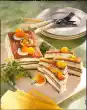Peel the tomato thinly. Form the skin into a rosette. Decorate the middle of the egg plate with it. Garnish the egg halves with deep sea crabs, a few capers or 1/2 teaspoon trout caviar. Cut salmon into strips, turn into small florets and place on top of the egg halves. Cut the gherkins fan-like and place them on the salad together with the anchovy fillets in the middle of the plate. Finally garnish with small parsley and dill bundles