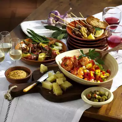 Fry the prawns for about 3 minutes. Season with salt and pepper. Arrange the salad with the prawns in a bowl. Garnish with parsley