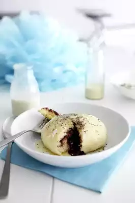 Heat 80 g butter, add poppy seeds and roast for about 1 minute while stirring. Arrange dumplings on plates. Pour over poppy seed butter and dust with icing sugar. Vanilla sauce is also delicious with it.