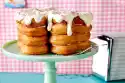 Knead dough briefly. Divide into 6 equally sized pieces. Press each piece a little flat. Put 1 tbsp. plum jam in the middle of each piece. Press the dough over it and form into dumplings. Place on a floured baking tray with the seam facing down.