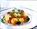 Wash and chop parsley. Season vinegar with salt and gradually add oil. Stir in onion and parsley. Put the beans, carrot, celery, tomatoes and romaine lettuce in a bowl and pour the marinade over them. Mix well. Garnish with caper apple