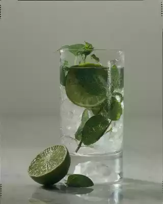 Wash the lime and mint and put it in a long drink glass with ice cubes. Add gin. Top up with well chilled tonic