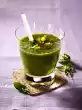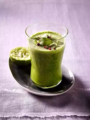 Place ginger, mint, agave syrup, coconut milk, lime juice and ice cubes in a blender/blender and mix.
