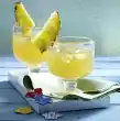 Peel and finely chop the ginger. Mix pineapple juice, lemon juice, sugar and ginger, season with nutmeg. Pour juice and ice cubes into a glass. Decorate with pineapple slices or wedges.