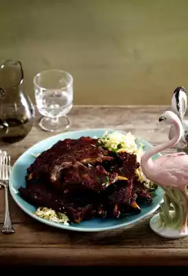 Spread on the baking tray and bake in a hot oven for 40-45 minutes. About 20 minutes before the end of the roasting time, brush the meat all around with the paste.
