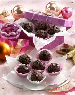 Form approx. 14 more balls from the remaining mass. Roll into the chocolate shavings and keep cool.