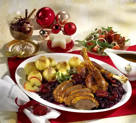 Mix 20 g sugar, pudding powder and a little cold water. Stir into the boiling mulled wine and let it boil for 1 minute. Place in a bowl, place cling film directly on the surface. Place in a cold place. Add cherries to the mousse before serving. Decorate with gingerbread and cinnamon sticks as desired