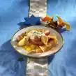 For the filling, soak gelatine in cold water. Knead marzipan and icing sugar, cut in half and roll out 2 plates (approx. 26 cm Ø) on a work surface dusted with icing sugar. Cut the gingerbread into small cubes.