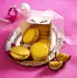Roll out 50 g marzipan on some icing sugar and cut out stars (2-3 cm Ø). Brush with water and sprinkle 2 tablespoons of sugar. Chop the couverture and melt it on a hot water bath. Pour into a freezer bag, cut off a small corner and spray as strips onto the dough. Let it dry. Cut into approx. 40 lozenges, decorate with stars