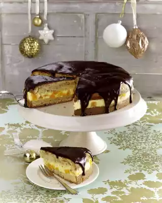 Drain mango well and dice. Cut the cake base in half horizontally. Close a cake ring around the lower cake base. Whip 100 g cream in a high mixing bowl until stiff. Fold cream first, then mango cubes into the pudding.