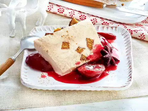 Let the parfait thaw for about 10 minutes before serving. Turn out of the mould, remove foil. Cut parfait into slices and serve with compote.