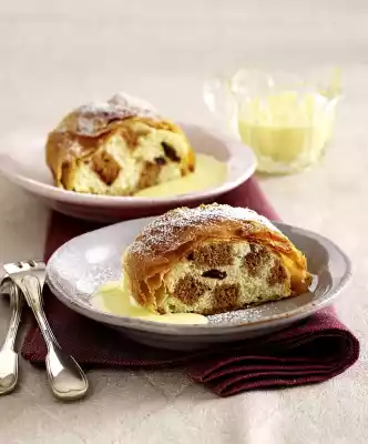 Process the remaining pastry sheets, some butter and the remaining sponge mixture in the same way. Spread the strudel with the rest of the butter. Bake in the preheated oven (electric cooker: 200 °C/ convection oven: 175 °C/ gas: level 3) for about 20 minutes.