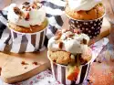 Press approx. 2 Giotto balls onto each muffin and sprinkle with the remaining hazelnuts. Bake in the preheated oven (electric cooker: 200 °C/ convection oven: 175 °C/ gas: level 3) for 25-30 minutes. Let them cool down on a cake rack and serve dusted with icing sugar.