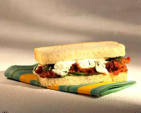 Fry the giros in a hot pan for about 4 minutes while turning. Cover a slice of toast with slices of cucumber. Spread the giros, cucumber curd and parsley on top. Cover with the second slice of toast