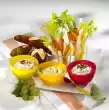 Cut approx. 5 thin slices from the cucumber. Roughly grate the rest and drain well on kitchen paper. Finely dice the onion. Mix quark with mineral water until smooth. Stir in the grated cucumber and diced onion. Season with salt and pepper