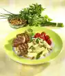 Arrange everything, garnish with rest of marjoram. Goes well with mashed potatoes