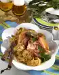 Add oil. Mix salad ingredients and vinaigrette. Serve the salad with the ribs.
