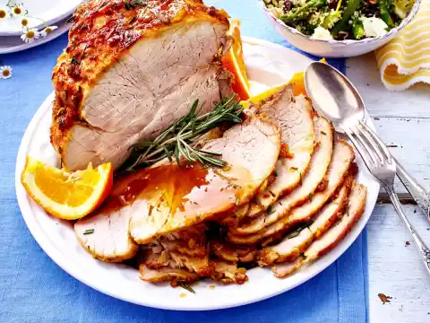 Roast in a hot oven for about 1 hour. After about 15 minutes, spread with half of the crust paste. 30 minutes later, brush with remaining paste and finish roasting.