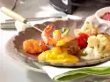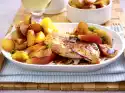 Keep the roast warm. Puree stock and apricots, bring to the boil. Season with ketchup and salt. Serve everything