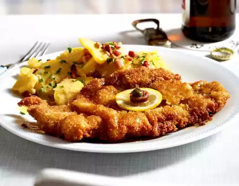 As soon as the underside is golden yellow (after 2-4 minutes) turn the escalope over and fry it on the second side in the same way. Drain the finished schnitzel on kitchen paper. Keep warm in a hot oven (at approx. 50 °C).