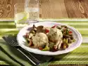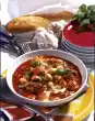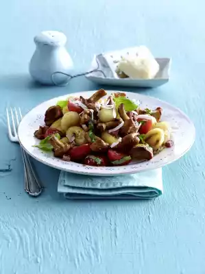 Fold in basil. Season with salt, pepper and a little sugar. Add stock and simmer for 2-3 minutes. In the meantime heat up oil in a pan. Fry the gnocchi for about 3 minutes while turning. Mix gnocchi and vegetables and arrange on plates immediately.