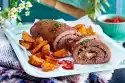 For the gnocchi, knead dumpling dough and egg. Form the dough on some flour into 4 rolls (each approx. 2.5 cm Ø). Cut each roll into about 16 pieces. Form pieces into oval dumplings, press in a pattern with the back of a fork. Cook the gnocchi in portions in boiling salted water until they rise to the surface. Lift them out and place them on a lightly oiled tray.