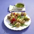 In the meantime cut the salmon into fine strips. Clean, wash and shake dry the rocket. Then cut roughly. Season sauce with pepper, lemon juice and a little salt