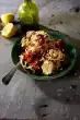 Roast the pine nuts in a large pan without fat until golden brown, take them out. Heat 2 tablespoons of oil in the same pan. Fry the aubergine in it until golden brown all around. Add the onion and chilli and fry briefly.