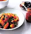 For the tapenade: dice the plums finely. Peel ginger and grate finely. Heat the oil. Fry anise, cloves and ginger briefly. Add plums and sugar, add 100 ml water. Simmer open for about 5 minutes until the liquid has almost evaporated.