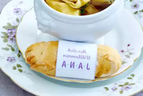 Whisk the egg yolk and 2-3 tablespoons of water. Spread the bread rolls with it. Bake in the preheated oven (electric cooker: 200 °C/circulating air: 175 °C/gas: see manufacturer) for 20-25 minutes. Let them cool down. With banderoles as desired