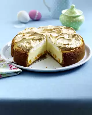 Beat the egg whites until stiff, then pour in 100 g of sugar. Take the cake out of the oven and carefully spread the meringue on top, leaving an approx. 1 cm wide edge. Bake for another 20 minutes
