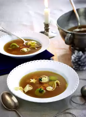 Cut the pancake rolls into approx. 0.5 cm wide slices and add to the soup. Arrange the soup in deep plates, sprinkle with parsley.