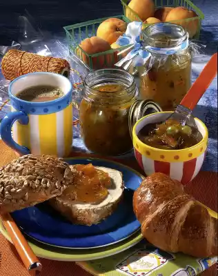 Immediately fill jam to the brim into prepared jars and close them well. Place on the lid (upside down) for approx. 5 minutes. Results in approx. 1150 ml jam.