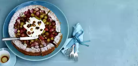 Remove from the heat and let it cool down. Spread gooseberries on the floor. Bake in the preheated oven (electric range: 175 °C/ convection oven: 150 °C/ gas: see manufacturer) for 40-45 minutes on the bottom shelf.