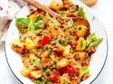 Bake in the preheated oven (electric cooker: 175 °C/ circulating air: 150 °C/ gas: level 2) for approx. 20 minutes. Beat the egg whites and lemon juice until stiff, adding 150 g sugar. Put the meringue mixture into a piping bag with a small star-shaped spout. Take the cake out of the oven and squirt meringue strips diagonally onto the cake evenly. Bake the cake at the same temperature for 15-20 minutes. Let the cake cool down and cut into pieces with a damp knife