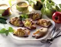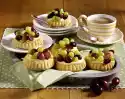 Simmer for about 1 minute at low heat while stirring. Put into a bowl and cover directly with foil. Leave to cool and chill. Stir the pudding through, stir in sour cream in portions. Pour evenly into the tartlets. In the meantime, wash and clean the gooseberries and let them drain well in a sieve. Mix the cake glaze powder and 30 g sugar. Gradually stir with 250 water with a stirring spoon until smooth. Bring to the boil while stirring, bring to the boil briefly and remove from the heat. Quickly add the gooseberries and immediately spread on the tartlets. Leave to cool. Decorate with mint