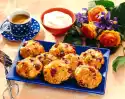 Place on a grid. Bake in the preheated oven (electric cooker: 200 °C/ convection oven: 175 °C/ gas: level 3) for 15-20 minutes. Remove from the oven and let cool slightly on a rack. Carefully turn out of the moulds and let cool down. In the meantime, stir 50 ml milk, sauce powder and 30 g sugar until smooth. Bring 200 ml milk to the boil, allow the mixed sauce powder to run in and bring to the boil again while stirring. Simmer for about 1 minute at low heat while stirring. Put into a bowl and cover directly with foil. Leave to cool and chill. Stir the pudding through, stir in sour cream in portions. Pour evenly into the tartlets. In the meantime, wash and clean the gooseberries and let them drain well in a sieve.